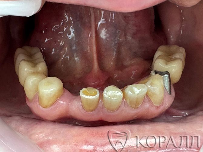 Жалобы: Отсутствие жевательных зубов, неудовлетворительный вид и функция передних зубов нижней челюсти.